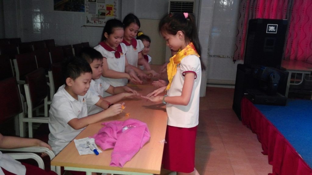 Các em học sinh tiểu học cũng vô cùng thích thú với những câu chuyện dí dỏm từ thầy Trung Quang